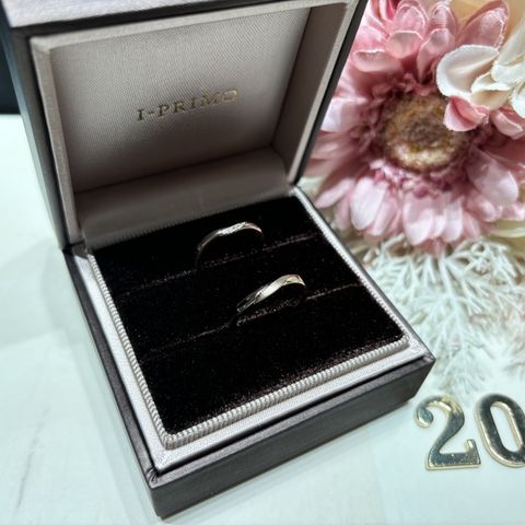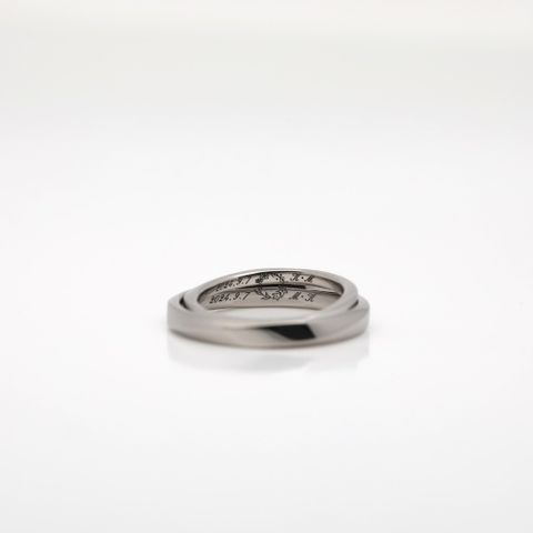 医療職、外仕事の2人であるため、仕事の邪魔にならないような華奢なデザインでなおかつシンプルで派手すぎないようなものが良くさがしていた。そして、内側の刻印には入籍日と名前を感じで入れることで、2人だけのものとし特別感を出した。みんなとは違う指輪がいいという2人の考えが一致した指輪になった。