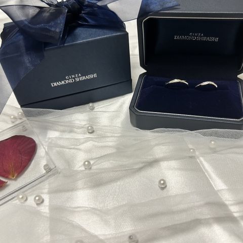 ・自分の指輪 光輝いていて高級感があり、男らしいデザインで 一目惚れして即決でした! デザインも個性がって唯一無認な一品でした ・妻の指輪 プラチナ純度が99%なので高級感があり ダイヤモンドのクオリティが格別!