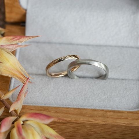 ウェーブラインが向かい合って鏡のようなデザインに一目惚れしました。夫婦でいつまでも向き合いながら成長していきたいなという想いもあり購入しました。カラーも充実していたので試着して、自分の肌色に合ったものを選ぶことができました。