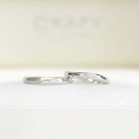 シンプルなデザインながら、特徴のあるメンズリングが気に入り購入しました。ウィメンズリングも嫌味にならない程度にきれいな輝きがあるダイヤが特徴的で、緩やかなカーブが指を綺麗に見せてくれます!大満足です。