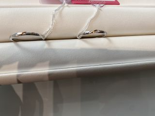 洗礼されたデザインで二人とも気に入ってます。 指輪の片側だけ艶消し加工できるのが良かったです。特にピンクゴールドの方を艶消し加工して大正解でした。 また、つけ外ししやすいようなデザインになっているようで、関節が太くてもつけ外しがしやすいです。