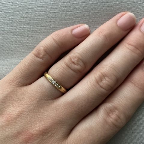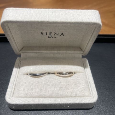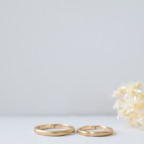 持ち込みのダイヤを使って婚約指輪を作りたいと思っていました。結婚指輪もセットリングで作れることになり、重ね付けしてもシンプルかつかわいいです。結婚指輪にもダイヤを入れたいと思っていましたが、派手になりすぎるのはちょっとなぁと思っていたので、シンプルなのも嬉しいです。