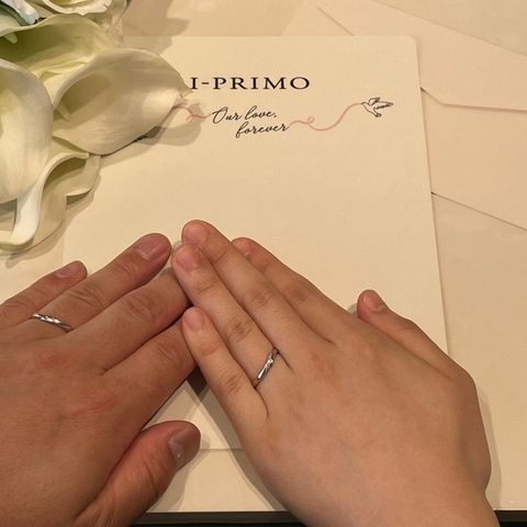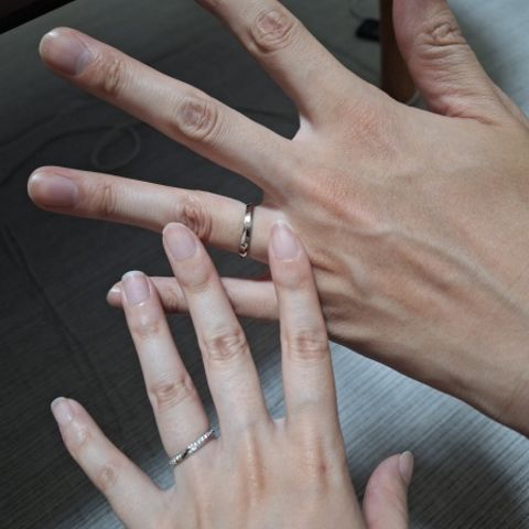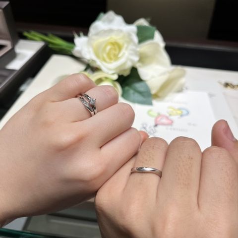 こちらの指輪のデザインは私たち二人の骨格やお肌にあったデザインになっており、どの角度からでも美しく上品に見えます。つけ心地も大変良く、アクセサリーをつけ慣れていない私でもすぐに指に馴染み違和感なく過ごせています。お値段は思っていたよりも高くなくとても良心的です。