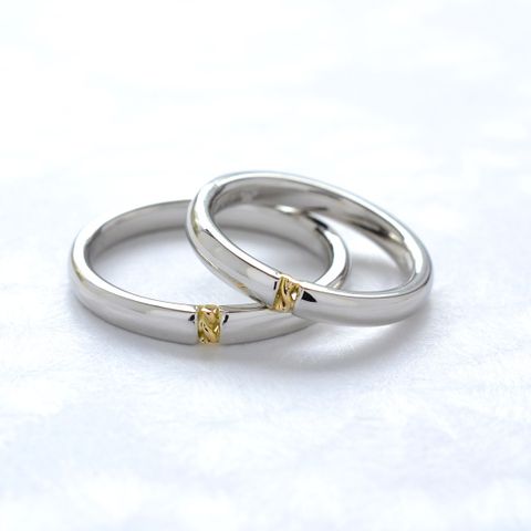 絆結はプラチナとゴールドのコンビネーションリングで、デザインがシンプルなので毎日付けるのにぴったりです。 光が当たった時にゴールドが綺麗に反射するので、程よいアクセントになり素敵です! それに、メインをゴールドにすることや、ヘアラインなどの加工を入れることもできるので、私のはプラチナメイン(ヘアライン)+ゴールド(鏡面)、妻のはゴールドメイン(鏡面)+プラチナ(ヘアライン)にして、互いのデザインが対なるようにしました。