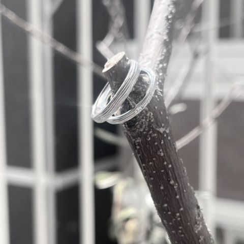 デザインがとても気に入りました。左右入れ替えることで他人から見える雰囲気が変わるのも気に入ったポイントです。ふたりともこだわりがはっきりしていたのですが、お互い第一印象でこれだってなったゆびわでした。