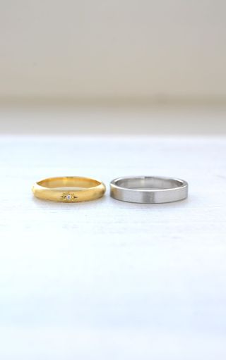 私はピンクゴールド、夫はシルバー。それぞれが気に入るデザインのものを見つけることができました。 ピンクゴールドの指輪にはダイヤを6個ほどつけていただきましたが派手すぎない上品な可愛らしさで愛用しています。指輪の形状はウェーブがかったものにしていただきました。(色々選べます)