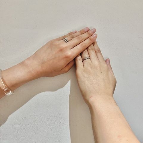 何よりデザインがとても気に入っています。縁結というデザインを選びましたが、真っ直ぐではなく少し波打った形が指に馴染み個性が出ているように思います。また、指輪に使用する材質や加工の選択肢も豊富にあり、より自分達に合ったひとつを作れるのも良い点だと感じました。