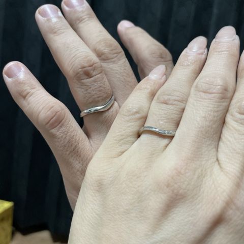 ウェーブで手との相性が良かったです!男性は少し変わったマット加工がされており、1番の決め手でした!また、共に中央と側面の間に少し溝があり、境目がしっかりして女性はダイヤモンドが綺麗に見えます。手に馴染みやすく日常的に付けるには合っていると感じました!