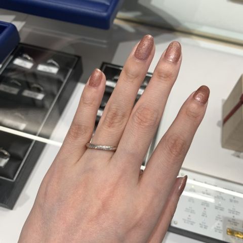 日本橋にて、周りと違い自身を持って付けれる、周りのブランドに劣らないそんな指輪を作ることができました。 加工については婚姻指輪(結婚指輪を作る前に作れる特典指輪)で試せたのでベストな指輪をオーダーできました。
