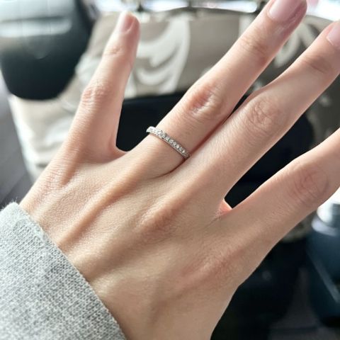 指にコンプレックスがあり、細く長く見えるリング探しをしてたらいいとこ取りのリングに出会いました!シンプルで可愛くてほぼ一目惚れでした!!着け心地も、とてもつけてるように感じないくらいのかろやかさでした。 色々試着させてもらったが、やぱ1位はここです。