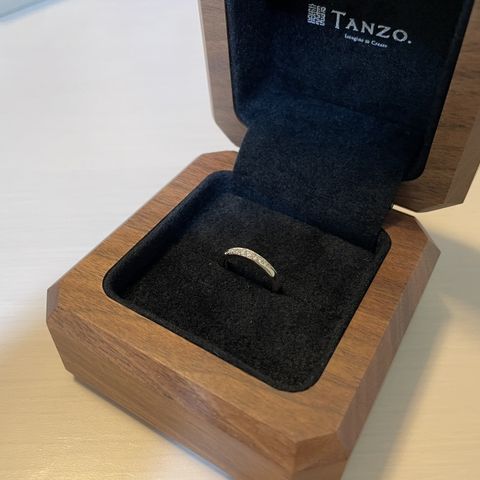 ダイヤ4石を希望しており、別ブランドだと3石or5石の場合が多いので、TANZOではダイヤの数、ダイヤの位置など自分好みに決められて、満足のいく指輪になりました。耐久度も高く、デザインも気に入っており、毎日つけられる指輪です。