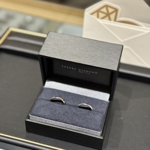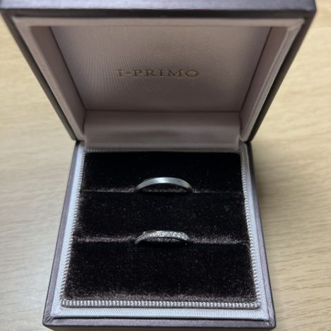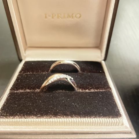 昔から大好きだったENUOVEで人とは少し違う、且つお洒落で自分達のこだわりを詰められる、そして自分で持っているジュエリーとの重ね付けのバランスも考慮して選びました。他も沢山見ましたが最初からお互いに気に入っていたミル打ちのデザインがとっても可愛いです♪