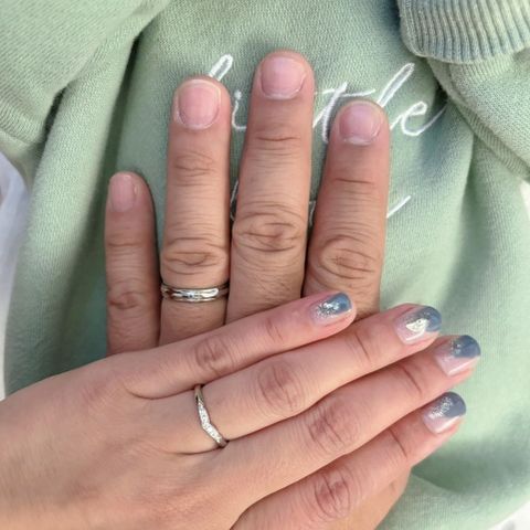 指輪のデザインは2人で同じにすることも出来るし、それぞれに合う別々の指輪にすることもできます。 デザイン、色を本当に自分に合うものに出来るので長年つけるのに違和感なくできるのがとてもいいです。 細さも調節できるので、指の長さに合わせたデザインにできるのがとてもいいです。
