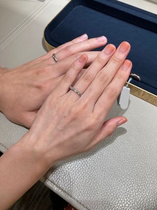 自分たちが作りたい希望の指輪を言葉で伝えると、いくつも提案をしていただいたので、具体的な指輪のイメージが決まっていなくても、店員さんと話し合いながら、楽しく作ることができてよかったです。希望通りの指輪のデザインになりました。
