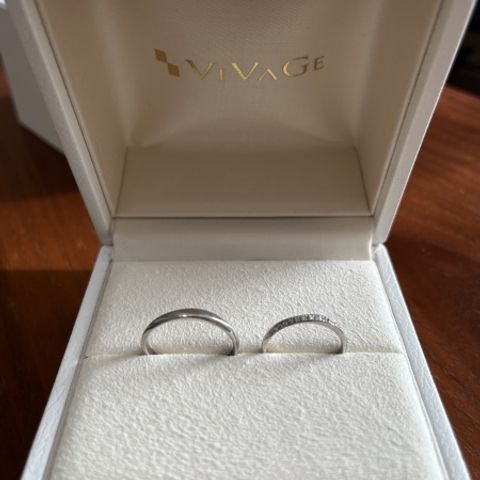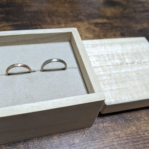 ペアでも素材を変えて作れたところ。男性用はほんの少しウェーブがあり、女性用は大きめにウェーブが入っているのが可愛いです。 お揃いの指輪でもちょっとづつ違ってもお互いに馴染む形にできたので満足しています。