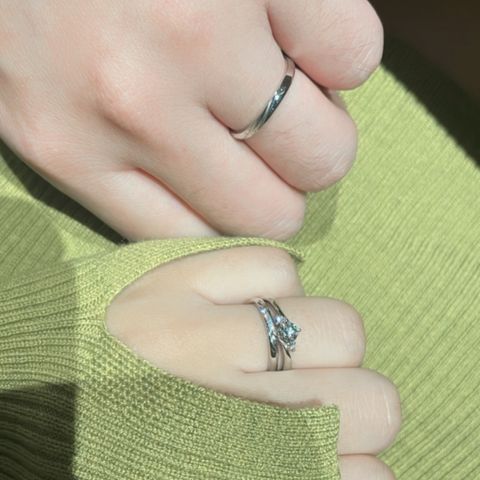 もともと違うブランドの気に入ったデザインがあり色々見ていたところ、似たデザインでこちらを見つけたので話があって決めました。裏側にはお互いの誕生石を入れて特別な指輪になりました。ダイヤも入っていてとてもかわいくてお気に入りです。