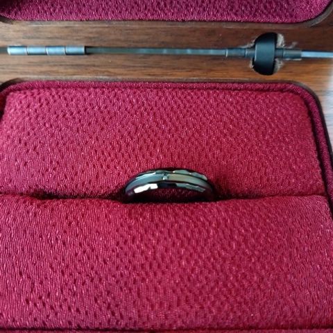 結婚指輪で黒色の指輪を探していて、 この指輪にたどり着きました。 ダイヤもブラックダイヤモンド1石なので、 シンプルですがシックな感じで、 黒色ですが、日頃の生活の中でも問題無く 使用出来ると思います。 付けた時も指にしっくりと馴染む感じです。