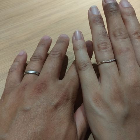 「2人ともダイヤを入れたい」「お揃いが良い」「ウェーブっぽいデザインが良い」などの色々なこだわりを全て叶えてくれる指輪に出会えました!お値段も予算以内で購入することができ、大満足です!男女共に着用しやすく、お気に入りです!
