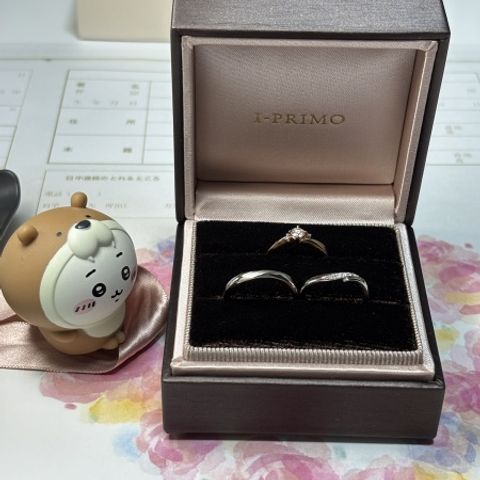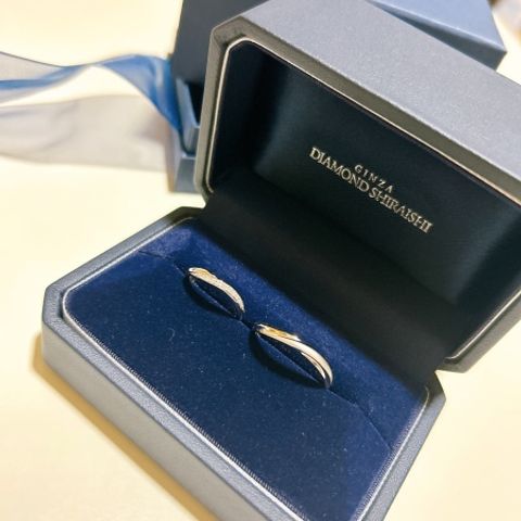 色々なブランドを検討して、何店舗も回らましたが、どこか自分らの中で迷いがありました。 お互いオーダーで唯一無二の物を求めていましたので、フルオーダーをされている、婚約指輪を購入したケイウノさんに行き、お互いのこだわりを全部詰め込んで世界一に1つのフルオーダーの指輪を購入しました。 婚約指輪との相性も最高で2人とも大満足しています。 世界一好きな指輪ができて感無量です。