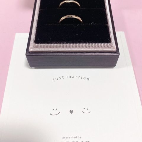 ピンクゴールドで肌馴染みのいい色でデザインも上品な輝きですごく可愛いです 仕事柄ずれないように少し小さめで作りましたが、きつくなくつけ心地も違和感がほとんどなくつけやすいです 刻印好きなデザインが入れられて、よかったです!