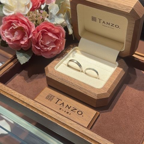 決め手は鍛造製法の説明を詳しくしていただいたことで、Tanzoが好きになれたからです 出来上がった指輪は2人で色味と加工を揃えて統一感をだせました! 和紙加工がとってもお気に入りです 付け心地もバッチリ! 2人で自分達に合う結婚指輪を納得して決めることができました