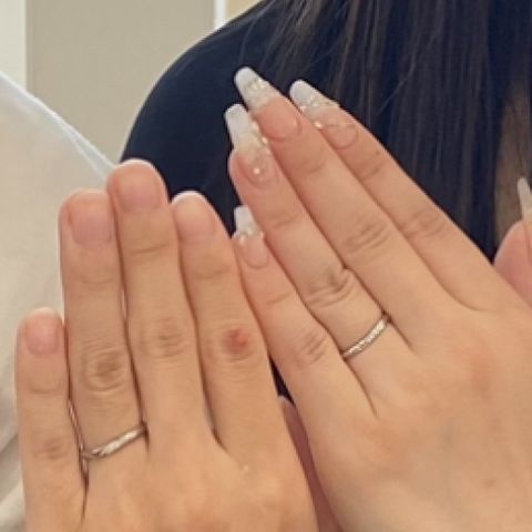 シンプルでカジュアルさがありつつ、上品な仕上がりにしていただきました。また、自分たちの好きな質感、重ね付けできるデザイン、石がが主張しすぎないような雰囲気など、たくさんの願いを叶えてくださいました。 内側には、2人の誕生日に共通することや、誕生日からイメージしたことをデザインして刻印してくださり、思い入れのある指輪を作っていただきました。