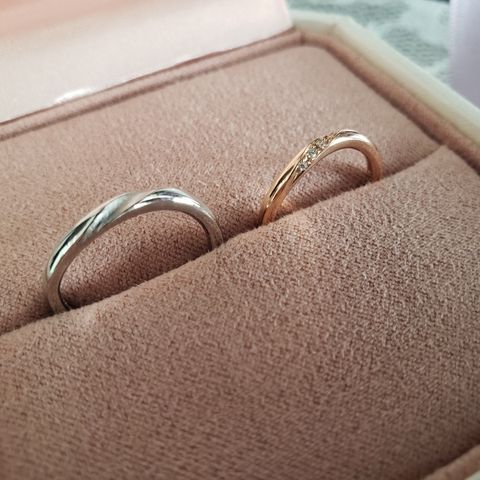 他のブランドもいくつか試しましたが、とにかくつけ心地が全く違いました!手を握りこんでも気にならず、普段アクセサリーをつけない旦那もつけていやすそうと言っていました。双子ダイヤモンドという1つの原石を2つに分けてそれぞれの指輪に付けられるのもロマンチックで気に入っています。旦那がマット加工が好きで、それを入れていただけたのも有り難かったです。