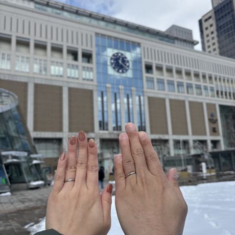 デザインは石をつけなかったため一見すると地味だが、仕上げをマットにしたことで見える向きによって輝き方が違うのでシンプルかつ個性的で、普段使いにもぴったり。 また、2人で一緒に作ったことで愛着がわくところもオススメ。