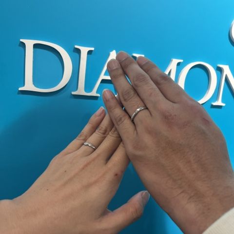 他店で指輪診断をしてもらい、夫婦ともウェーブ型が似合うとのことで形にこだわりました。また夫の指輪は一部艶消ししマットな加工、妻の指輪は一粒ダイヤを埋め込んでもらいました。裏側に結婚記念日やイニシャルを刻印してもらい誕生石も埋めてもらったのがお気に入りのポイントです。
