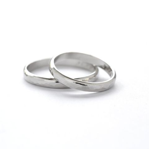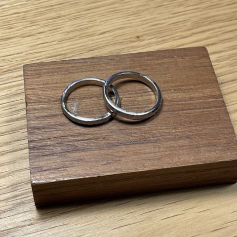 普段使いできるシンプルな指輪と決めていました。 シンプルだけでなく、つるんとした丸みがあり、角度による光沢感が出る、金槌デザインにしました。 内側は2人らしさを入れたデザインにしました。 何十年も身につけるものということを意識しました。