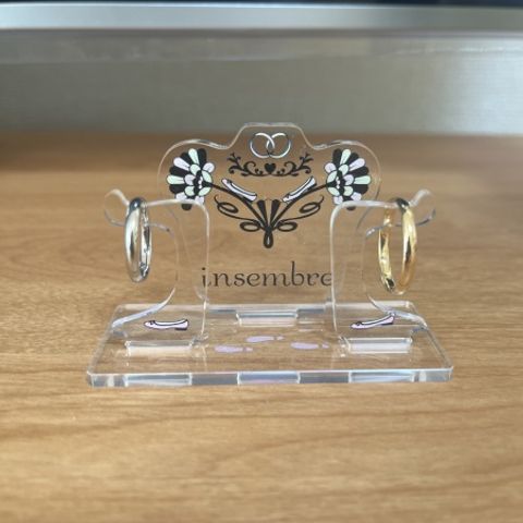 シンプルかつ華やかさがあり、指輪の形にも意味が込められている。また、リングの内側にはローマ字での名前、小粒のピンクダイヤモンドを入れて内側にも華やかさを意識。 リング自体がウェーブ状のため手の形にフィットしやすい。
