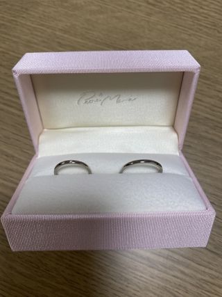 【男性指輪】 シンプルなデザインです。価格は10万円程度でした。着け心地がとても良く、日常生活でなにかひっかかったり、物をつかむときに支障がでたりはありませんでした。 【女性指輪】 ストレートタイプの指輪にしました。色は同じくサクラゴールドです。小さなダイヤが埋め込まれています。色合いが調和していてエレガントさもあります。また、ダイヤ部分がなめらかに加工されているので、引っかかりとかもなく、良い着け心地と話していました。