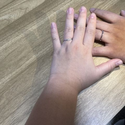 指が綺麗に見えるので、この指輪一択でずっと決めてました!!実際につけても本当に綺麗で、毎日眺めているくらいです。私は指が細くないのですが、華奢にみえるので、とてもそう言う方にもおすすめしたいです!!!!