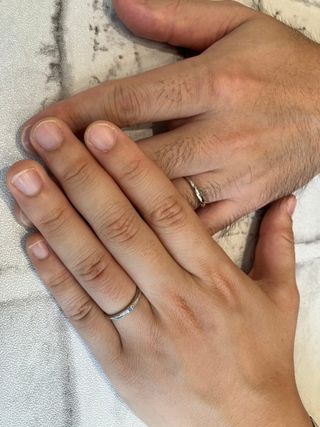 私たちが重視した点は、①予算は2人で30万円以内②デザインはS字③グロス加工の3点です。今回購入した指輪は、探していた中でも理想に最も近いものであったため、大変満足しています。様々な指輪を見た中で、直感で「これだ!」と思ってしまいました。実際に完成したものを見た時、二人で見て選んで良かったなと改めて感じることができました。