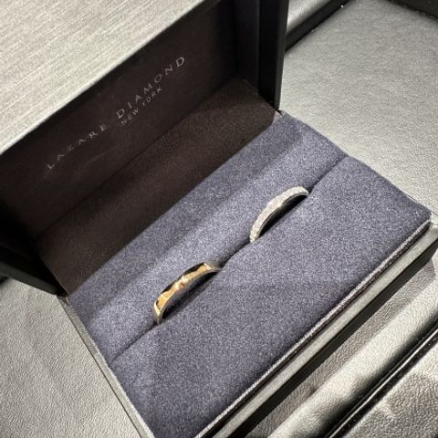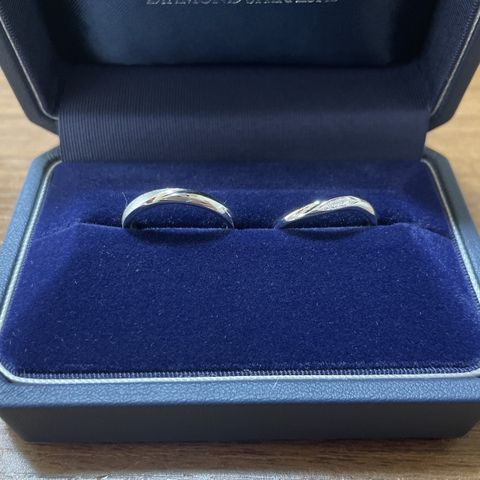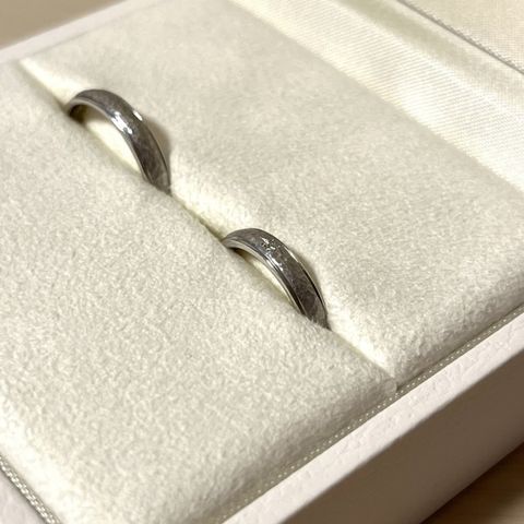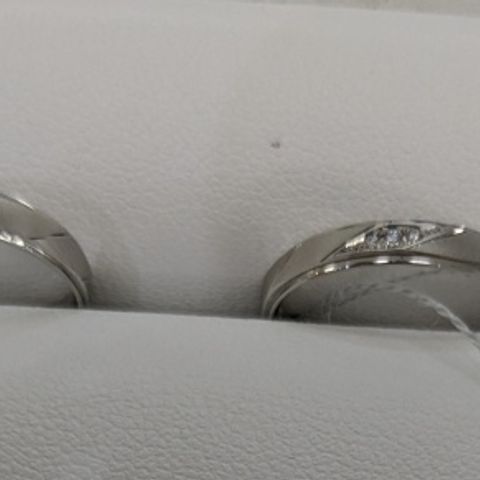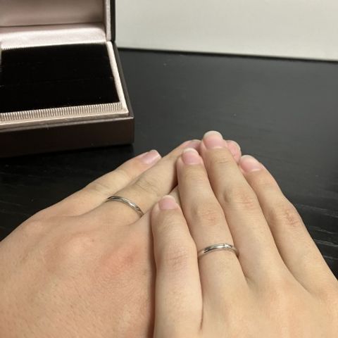 シンプルなデザインですが、ダイヤモンドの存在感はしっかりあり、とても綺麗です!着け心地もバッチリです! 彼の方も、ラインが2つ入っていてお気に入りのようでした! 飲食店勤務なのでつけ外しが多いと思いますが、早くつけたくなりそうです!笑