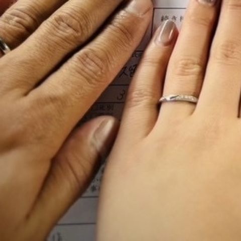 私が再婚、旦那は初婚ですがお互いいい歳で…いい歳なのに、収入は良い方ではないので高い指輪は…と、初めはシルバーの結婚指輪でしたが結婚一年目の記念にプラチナにしよう!と決めたもののやはり価格で難しいか…と思いながら探していた時に出会いました。シルバーの結婚指輪のデザインが気に入っていたのでなるべく近いものにしました。