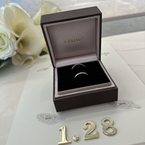 カナッサはつや消し加工と鏡面のコントラストが夫の太い指に渋さと上品さを与えてくれ、ダントツで夫のお気に入りとなりました。I-PRIMOに決めたのは夫にカナッサをつけてほしかったからと言っても過言ではありません。 ケレリスは見た感じは華やかすぎないか心配でしたが、つけてみるとシンプルで落ち着きがあり、50代の指にもしっくりくるものでした。 シリーズは違いますがウェーブの入り方が似ていて違和感はなく、お互いに一番指に合って気に入った指輪が手に入り満足しています。