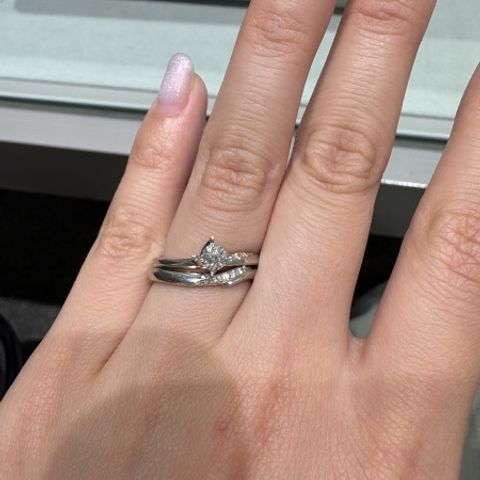 デザインは日常使いできるけど、とにかくキラキラしているものが良くて、上から見ても、下から見てもダイヤが綺麗に見えるこちらに決めました! 指輪に込められた意味もとても素敵で、即決でした! 2人でいつまでも一緒に笑っていたい、改めてそう思わせてくれる指輪です。