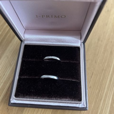 2人とも気に入って、かつ似合うデザインで探していました。他にも数店舗巡りましたが、2人とも一番しっくりきました。また、私は小さいダイヤを1つ外側に入れると決めていたため、それを叶えられたのもよかったです。