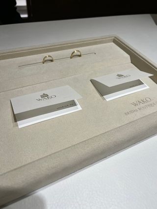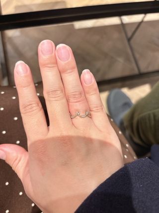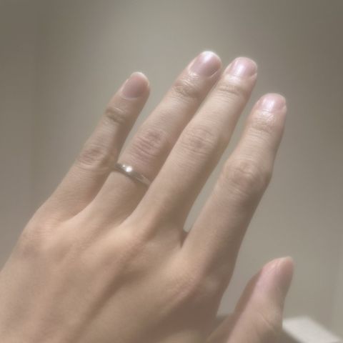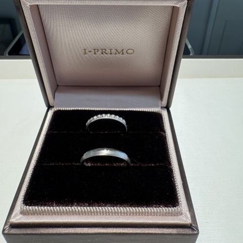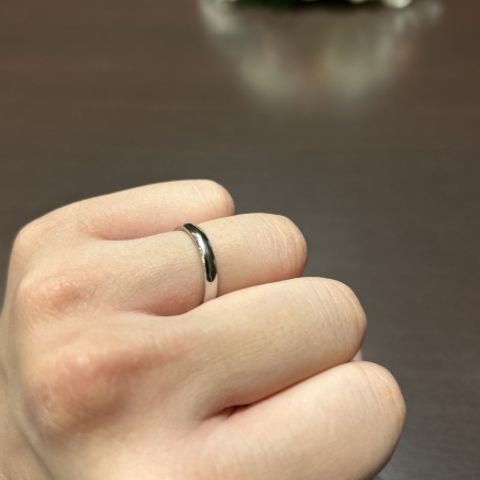指輪の幅を細かく選ぶことができます。2.0mm幅だと細すぎる、2.5㎜幅だとちょっと太いかも……と思っていたところ、「2.3㎜幅もできますよ!」と提案していただきました。おかげで自分の指の太さやイメージにピッタリ合う幅になったと思います。 また、二人の指輪にお揃い感を出したいと考えており、女性用のメレダイヤと同じ部分に、男性用はマット加工を入れたいとお願いしました。すると、担当者の方が「マット加工の両縁にヘアライン仕上げを入れたらどうでしょうか」と提案してくださりました。結果、マット加工の部分がより映えるデザインになり、大変気に入っています!