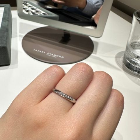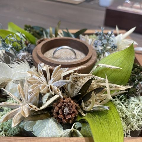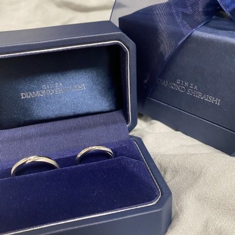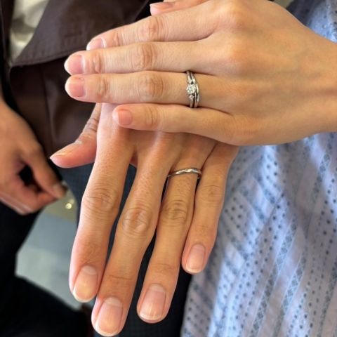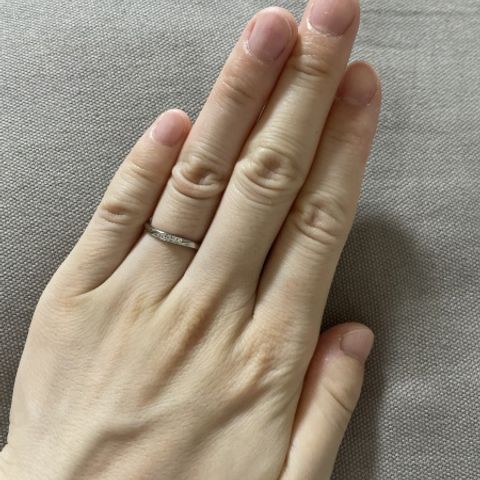 【指輪のデザインについて】 結婚指輪を探して、いろいろなブランドを10件ほど回りました。見ているうちに「プラチナで鍛造製法のストレートが良い」と2人で決めたところまでは良かったのですが、彼の欲しい指輪と私の欲しい指輪のブランドが一致せず...。指輪探しはかなり難航しました。 最終的に、それぞれの好きなデザインで職人の方にフルオーダーか、2人で手作りにしようということになりました。 CRAFYへ相談に行く前からそれぞれ希望のデザインが決まっていたため、相談時もスムーズに進められました。出来ることの幅が広いため、全くこだわりや希望イメージがないと難しかったと思います。 夫のリクエストで夫の指輪の槌目模様を私が打ったり、内側の刻印に新緑の時期の結婚式を表してリーフモチーフを入れたり...いろいろこだわりを詰め込むことが出来ました。 【価格について】 当初の予算の半額で作ることができました。結婚指輪にしては安すぎるかな?と思いましたが、他と違いブランド料がないだけで素材の品質は良いものだったので、お得に買い物が出来ました。 結婚式をすぐ控えていたので、そちらに予算を回せたので結果良かったです。