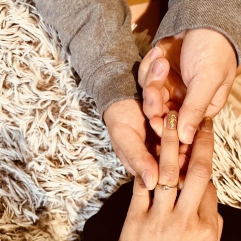 シンプルで、落ち着いた感じがします。ダイヤなしも検討しましたが、やっぱりありの方が気分が上がり、日常的につけることで嬉しくなるしハッピーな気持ちでいることができます。内側にも刻印をしてくださって、イニシャルと、結婚記念日の刻印をしてもらいました。