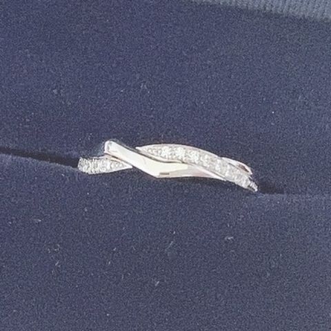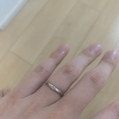 自分たちの手と指を綺麗に見せてくれるデザインにしたくて、少しウェーブがかっている指輪にしました。私の指輪はダイヤが指輪に曲線状についているので手を動かしたときにきらきら光って見えるのでテンションが上がります!彼の方は曲線状にマットになっていて、見る角度によって違って見えてかわいいです。