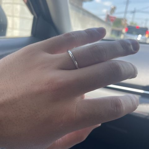 色々試着したところ、私はシンプルな指輪が似合うことが分かりました。このようなことからシンプルなデザインの中からたくさん提案してもらい購入にいたりました。無駄がなくとてもシンプルで綺麗な指輪でとてもオススメです。