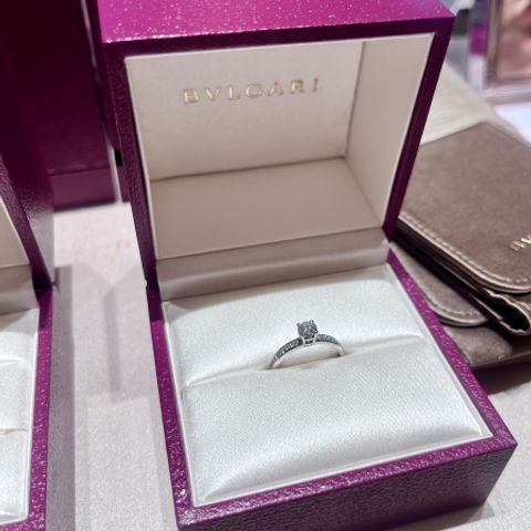 ブルガリは個性的、エレガントなイメージでしたが、実際に伺うと、シンプルなものからゴージャスなものまでご用意されていました。 シンプルで飽きのこない指輪を希望していたため、シンプルなものを選びました。とても素敵です。