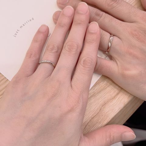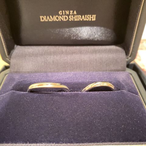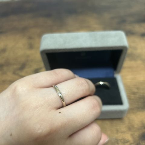 婚約指輪とセットになるものにしようと思ったけれど、セットなもので無くても重ねて違和感もなかったので、色々みた中で2人の気に入ったデザインにしました。 綺麗な見た目で、シンプルなのに存在感があって素敵です。