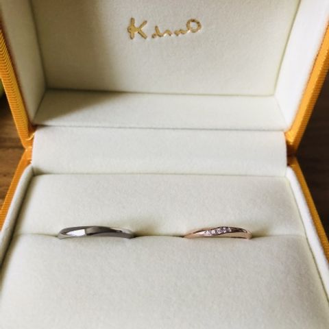 2人違うテイストの指輪にしましたが、2つとも手の込んだ素敵な指輪で感動しました。長い時を一緒にする素敵な指輪になりました。 試着の時に完成途中の指輪もつけさせていただいて、とても貴重な経験になりました。