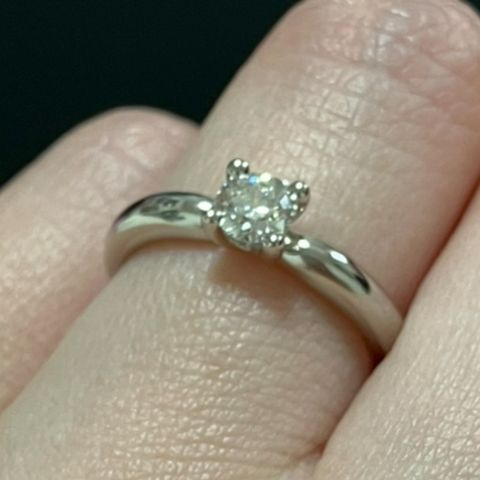 "婚約指輪といえばこんな形"というイメージ通りの指輪でした。指輪の形が特に気に入っています。ダイヤモンドのサイズも様々ありましたが、付けた時にワクワクするようなサイズ感で、でも主張しすぎないところが良いと思います。