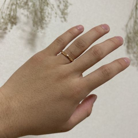 シンプルで同じものが存在しないという良さ。 着け心地もよく、普段使いしやすいところも良き! 指も綺麗に見えるし、見た目もよく素晴らしいとしか言いようがないです! とても素敵な指輪ですね! とてもおすすめだと思います!!