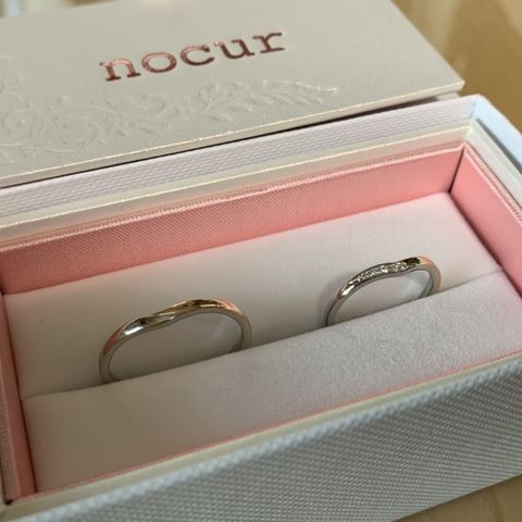 他にも素敵なデザインは沢山あったのですが、実際店舗に足を運んで2人で見た瞬間に一際輝いていたので。 これしかないと2人で思い決めさせていただきました。 今回選ばせて頂いたのは結婚指輪でしたが、婚約指輪もとても可愛くて素敵なものでした